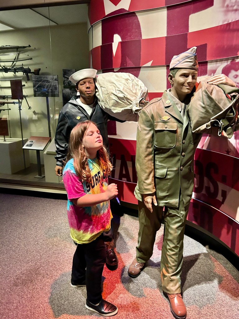 Sunday started early with Henry’s Hockey Practice. Billy is the coach of the team and his buddy Adam is the assistant couch. We’d seen Henry on ice before and continue to be amazed at how good this little guy is at skating. He won’t be 8 til next month, and he’s small, but this kid can skate! I think his Dad wishes he’d been that good this age! The girls were with us, and Annabelle wanted Chick-Fil-A for lunch, and couldn’t understand, and frankly didn’t care, that it was Sunday and it was closed! Not always easy to argue with a 4 year old! We went to a local food hall with lots of choices, and that wasn’t the best solution either, but we made it work. Burgers and fries worked till Annabelle discovered there were “green things” (parsley) on the fries! Grandma and Dad tried to convince her that was green salt, and after picking it off a dozen or so, she ate two and said she was full! Next on our very full agenda was the North Carolina Museum of History. We enjoyed our stroll through the history of North Carolina, but as always, the Gift Shop was probably their favorite! After a brief rest, it was time for Layla’s soccer game! We saw her play the first half as the Goalie and the second half on defense. It was a good game, and Layla’s team won by a score of 3 to 1.
