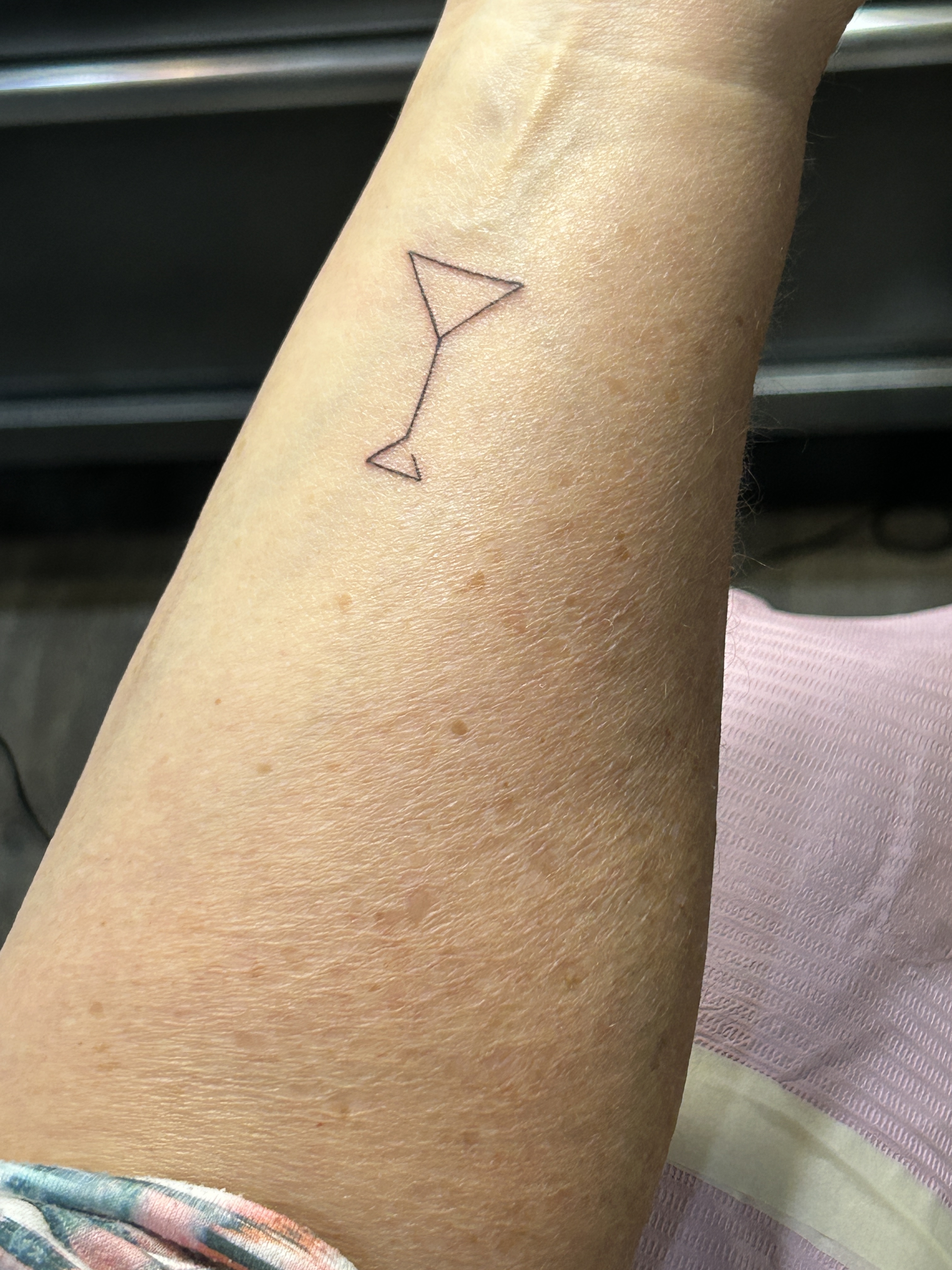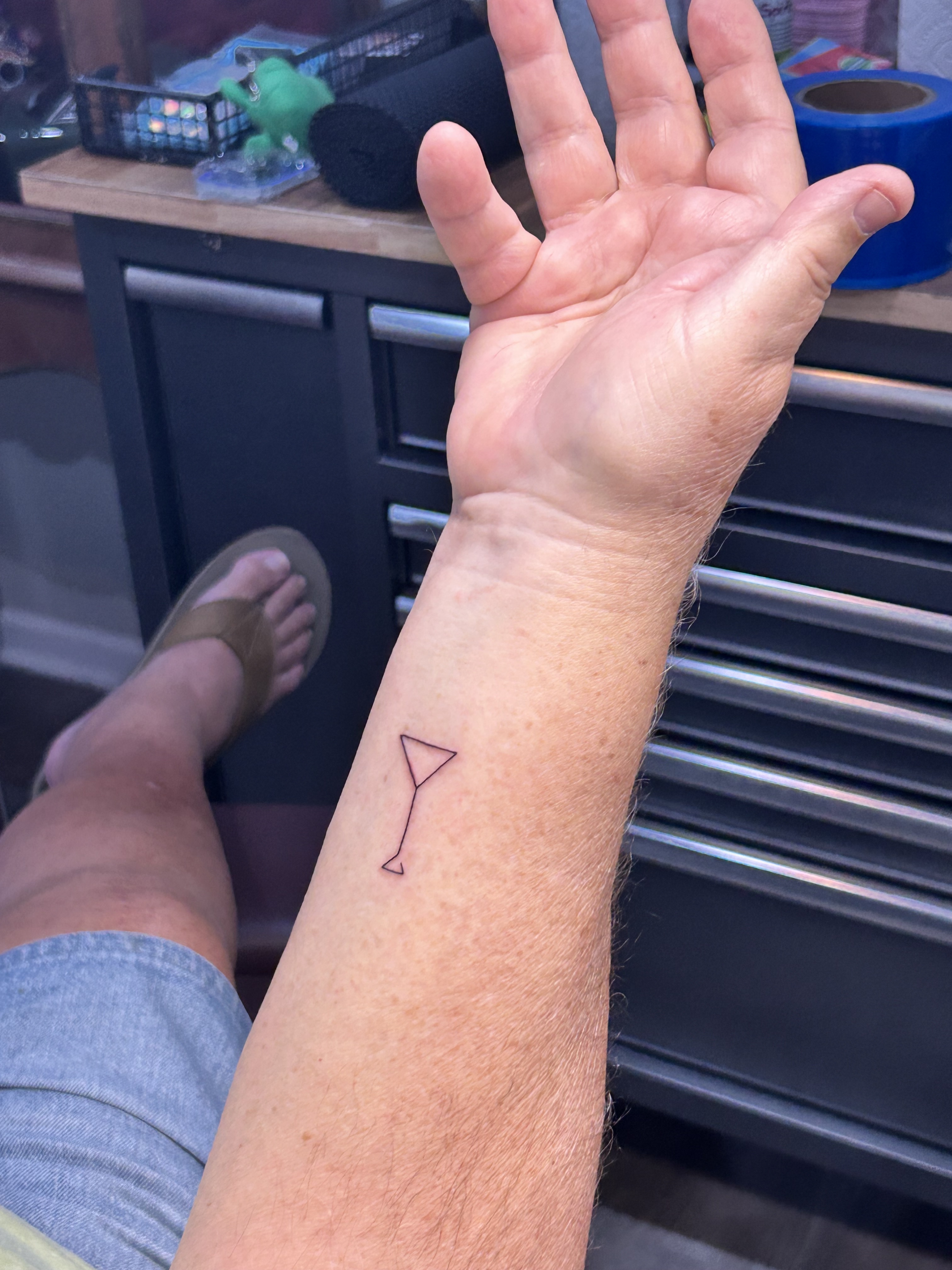 We’d been kicking around the idea of getting a Martini Glass tattoo on our right wrist for a couple of months. I really don’t remember where the idea came from, but we had a couple design ideas. Susie had done some research, but we just hadn’t worked up the nerve yet. On Tuesday, after Susie got back in the car after her pedicure, she looked at me and said, “Want to go to the Tattoo place?” The “Tattoo place” Susie was referring to was Hidden Cove Tattoo, on Route 9 in Somers Point, right next to Hot Bagels and More. “Sure,” I said, and off we went.
