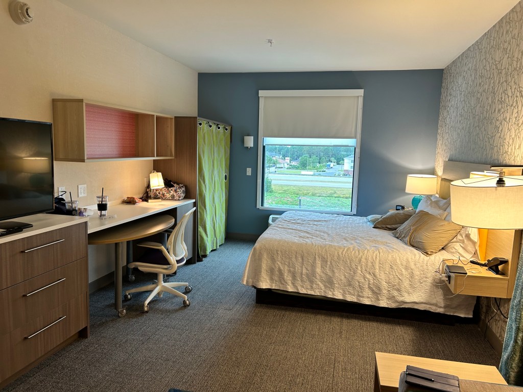 Formerly one of our travel ‘guilty pleasures”, I believe this was the first Cracker Barrel meal we’ve had in several years. Waiting for dinner, Susie and I were talking about how every Cracker Barrel across the country looks the same, with the same layout and decorations! That led us to a discussion about traveling in our childhood, and how almost every Howard Johnson looked the same and had the same menu. Like Cracker Barrel, you always knew what you were going to eat, and where the bathroom was. We enjoyed our meal, and getting to watch our fellow dinners, before heading back to the hotel and our bed!
