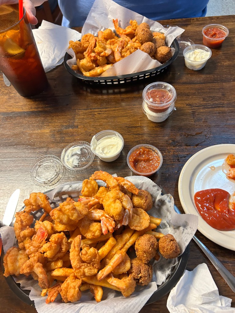 We knew that the next day was going to be special, because dinner would be at B & J’s Steak and Seafood in Darien, Georgia! Shortly after I retired in 2016, we made our first winter trip to Florida, and when a friend I used to work with (Abe Gorin) saw where we were, he suggested B & J’s. Just the best fried shrimp and great looking steaks, oysters, and fried chicken too, but we always have shrimp! Everything looks good, but as someplace we are at a maximum of once or twice a year, we are not in a mind to try other things! Rather than one of the crappy motels in Darien, which we’ve stayed in before, we had an incredible room in a Hilton Home 2 Suites in Brunswick, Georgia! A great night all around.