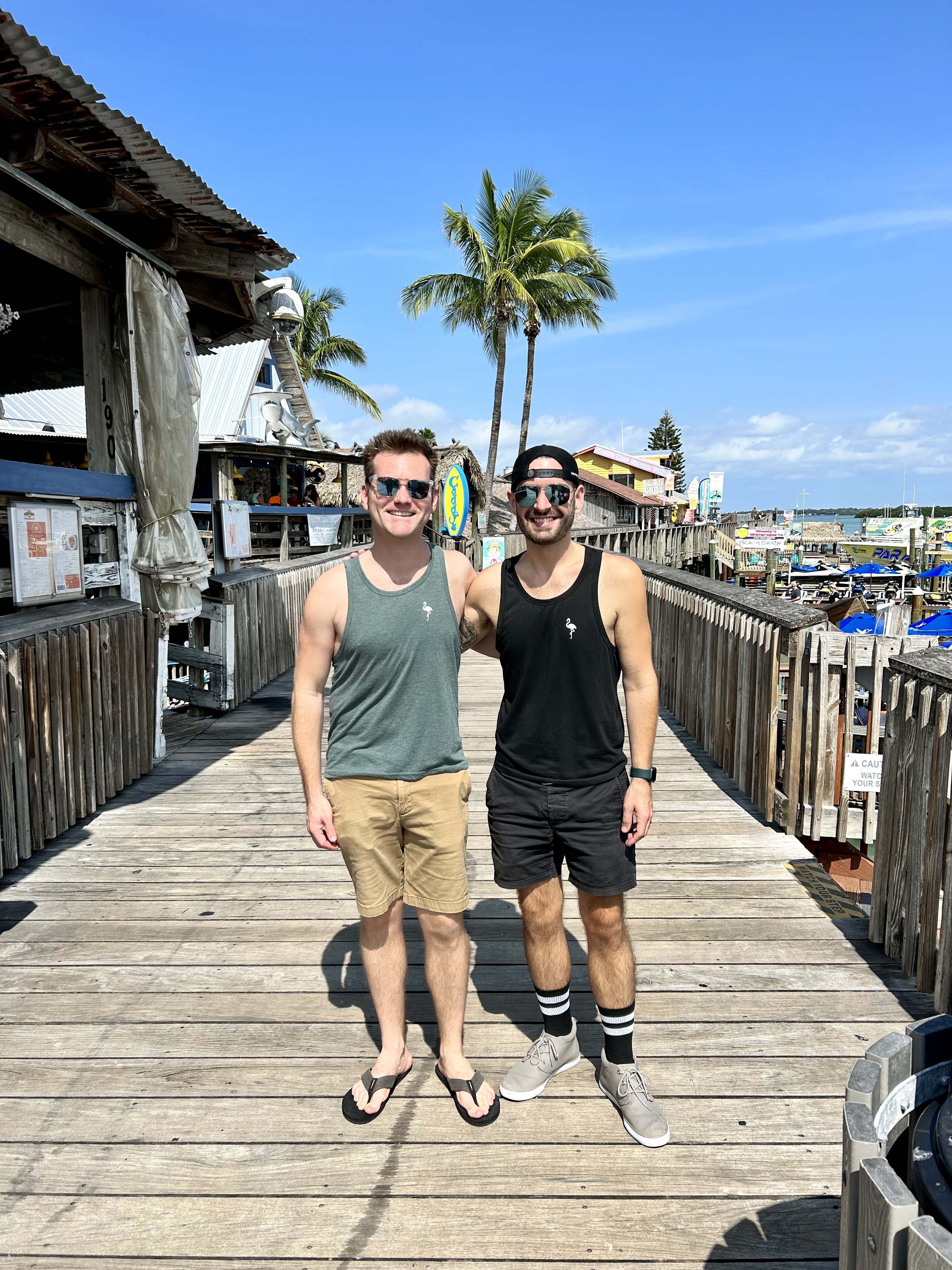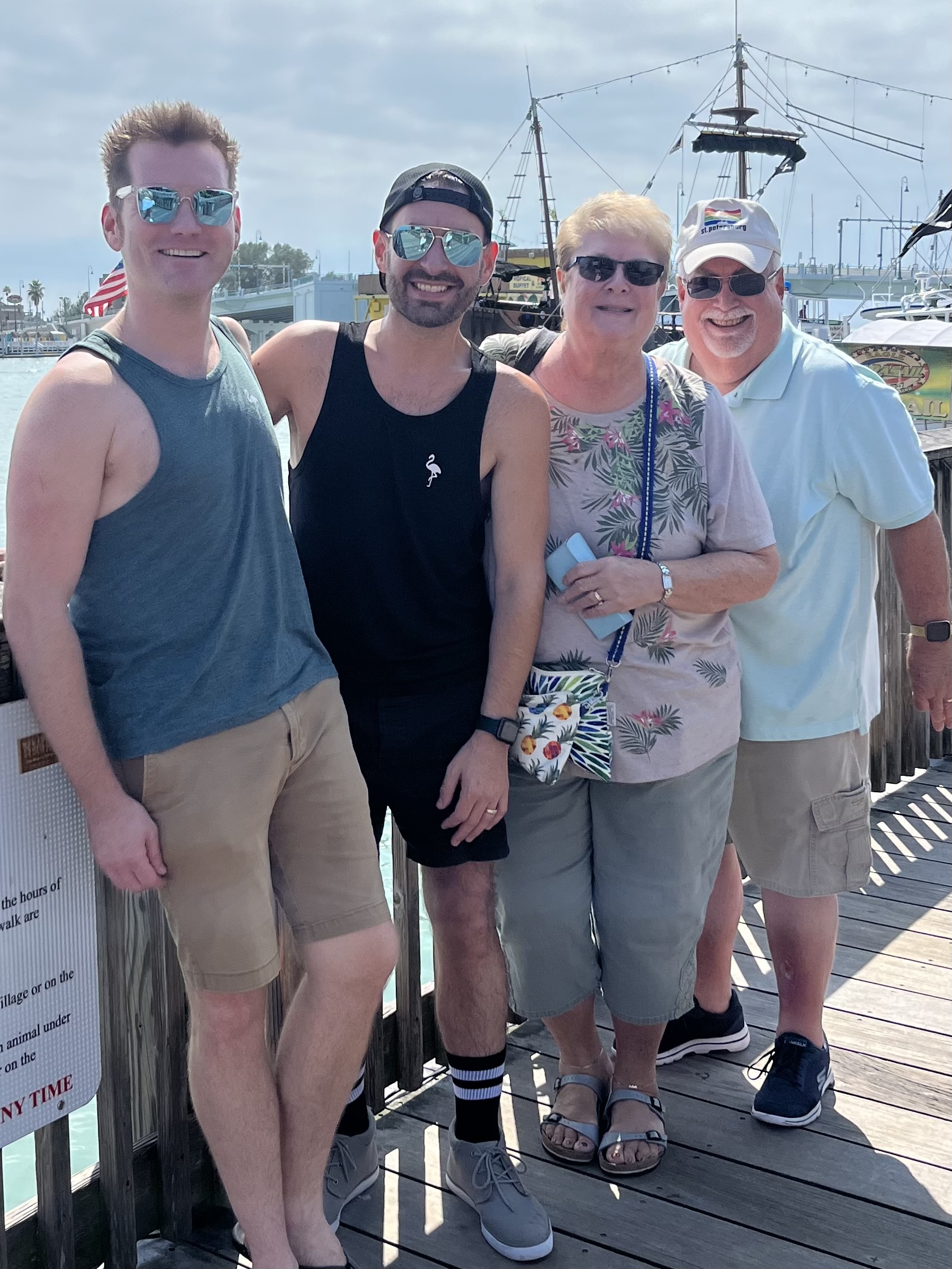 Happily, when we got up the next morning the sun was out and we were happy to see it again! It was humid and warm too, but then, we are in Florida! The day was Friday and the date was October 13th, but this is not about bad omens, for today is a wonderful day, because we are fortunate enough to be able to spend the 5th Anniversary of the day Kenny and Chris got married in Lake Tahoe with them! Looking back, it turns out that we’ve spent more than a couple of their anniversaries with them! A leisurely morning was followed by a trip to John’s Pass in Madeira Beach for some walking and shopping. We got our steps in and Susie made a few purchases (the first was a t-shirt for me) and we enjoyed the sun and the views!
