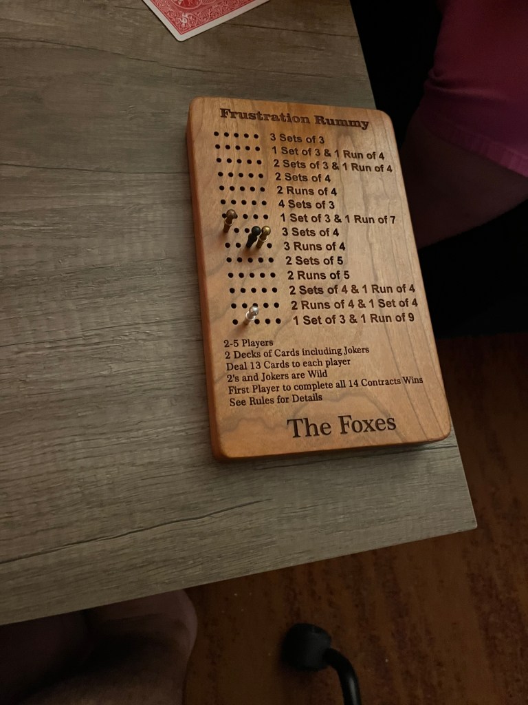 We dropped the boys off at home, and returned to our hotel for a couple of hours. A little reading, snoozing, and some water, (need to re-hydrate in sunny Florida!) before heading back to a night of cards (Frustration Rummy…Chris won), a couple of drinks, and some great pizza/Italian take out! Tomorrow we head home again, so we’ll be On The Road again!